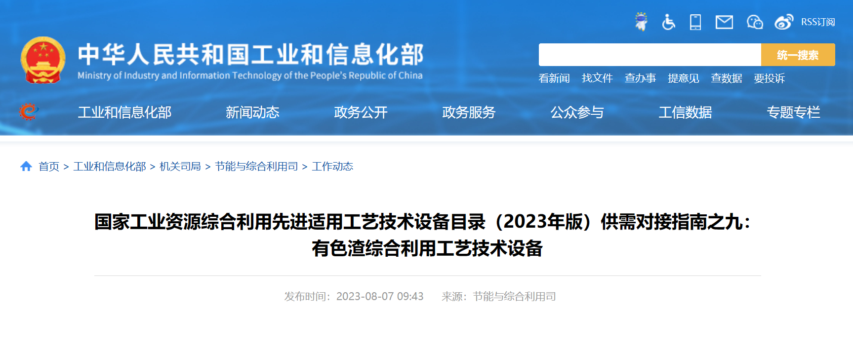 國(guó)家工業(yè)資源綜合利用先進(jìn)適用工藝技術(shù)設(shè)備目錄(2023年版)供需對(duì)接指南之九:有色渣綜合利用工藝技術(shù)設(shè)備