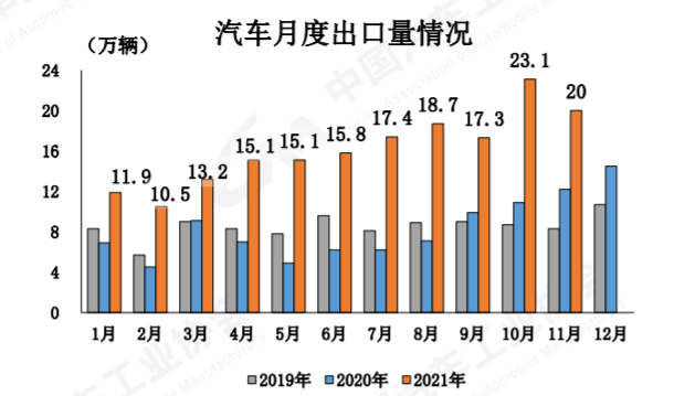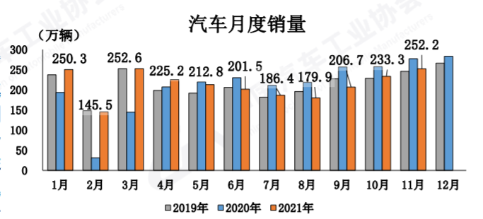 值得一提的是,去年12月汽車產(chǎn)銷水平位居全年最高,為283萬輛,再考慮到今年芯片供應(yīng)不足的問題,因此,今年12月汽車行業(yè)仍然面臨很大壓力。