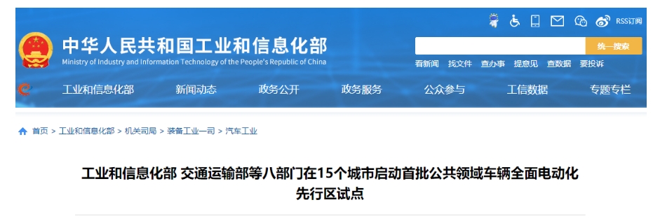 工信部等八部門在15個城市啟動首批公共領(lǐng)域車輛全面電動化先行區(qū)試點一圖讀懂(來源:裝備工業(yè)一司)
