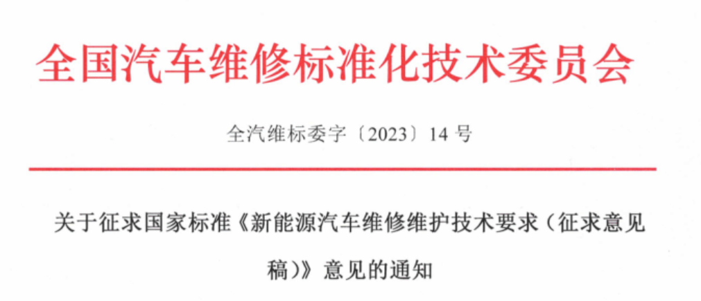全國汽車維修標(biāo)準(zhǔn)化技術(shù)委員會關(guān)于征求國家標(biāo)準(zhǔn)《新能源汽車維修維護(hù)技術(shù)要求(征求意見稿)》意見的通知