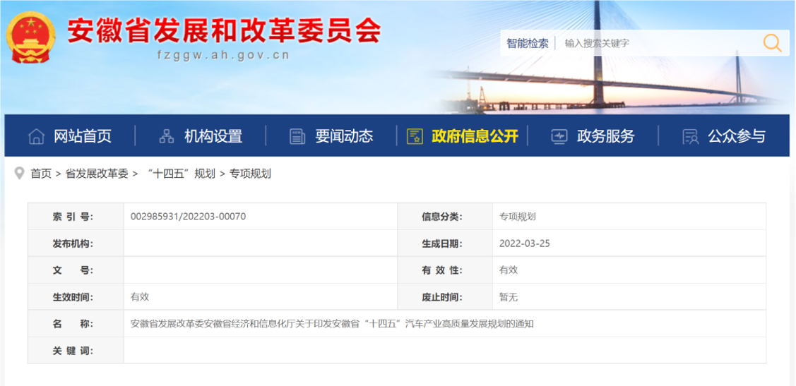 安徽省發(fā)展改革委等二部門關(guān)于印發(fā)安徽省“十四五”汽車產(chǎn)業(yè)高質(zhì)量發(fā)展規(guī)劃的通知各市人民政府,省有關(guān)單位:經(jīng)省政府同意,現(xiàn)將《安徽省“十四五”汽車產(chǎn)業(yè)高質(zhì)量發(fā)展規(guī)劃...