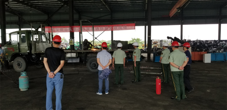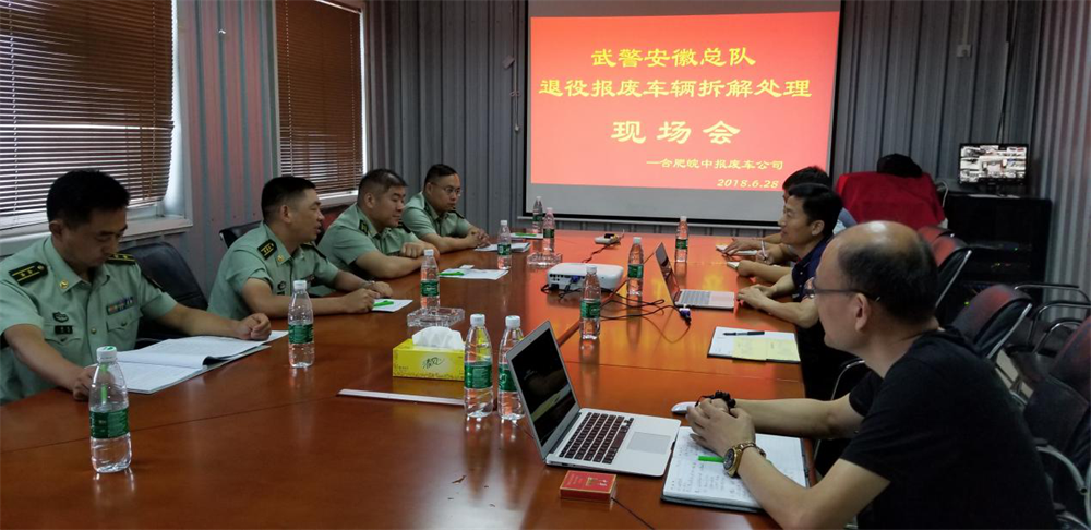 6月28日上午,武警安徽省總隊在合肥市皖中報廢汽車回收有限責任公司就皖中公司中標的80余輛退役報廢車輛舉行拆解處理現(xiàn)場會。武警安徽總隊裝備保障處扶德才處長、吳峰副處長等6人;玉成有限公司副總裁兼皖中公司總經(jīng)理何學海、玉成有限公司大客戶(回收)總監(jiān)王東峰、皖中公司副總經(jīng)理胡冬祥、吳畏等參加。