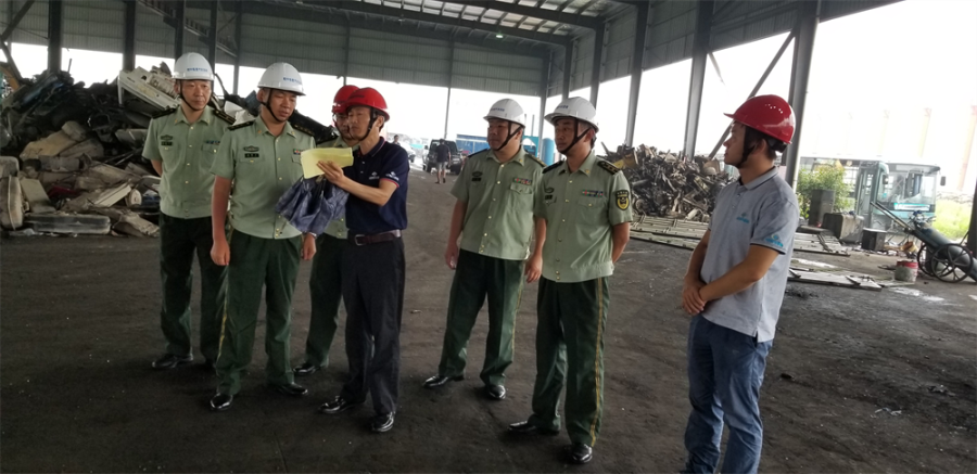 隨后在拆解車間,扶德才處長一行就此次的武警安徽總隊退役報廢車輛現(xiàn)場拆解進行監(jiān)督,過程中不斷與皖中公司相關陪同人員進行交流,對皖中公司拆解現(xiàn)場的安全防范工作給予高度評價。